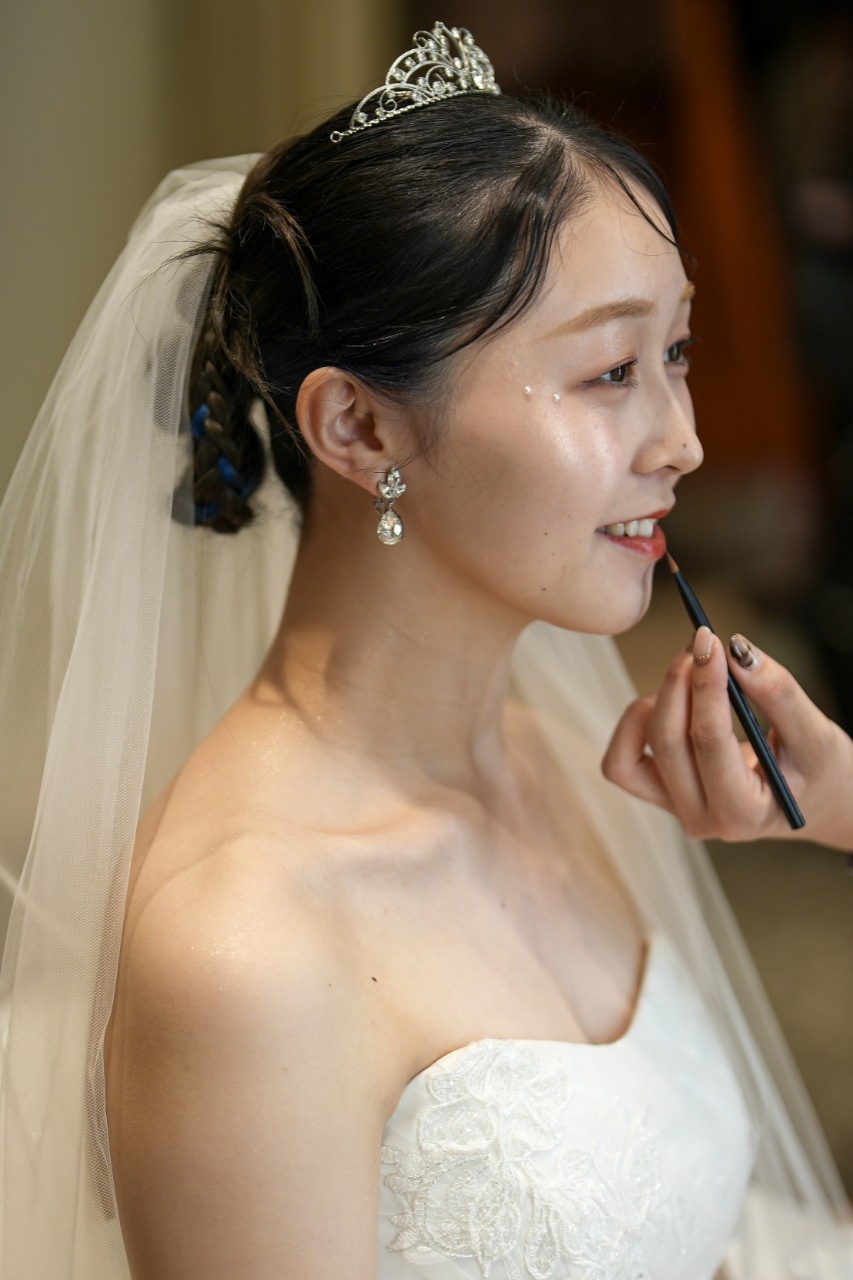 ウエディングドレスのヘアアクセサリーはシンプルにティアラのみ